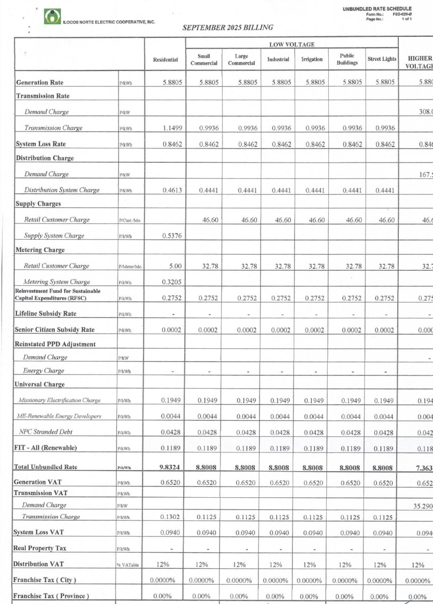 Breakdown of Generation Charge/ Unbundled Rates 2025