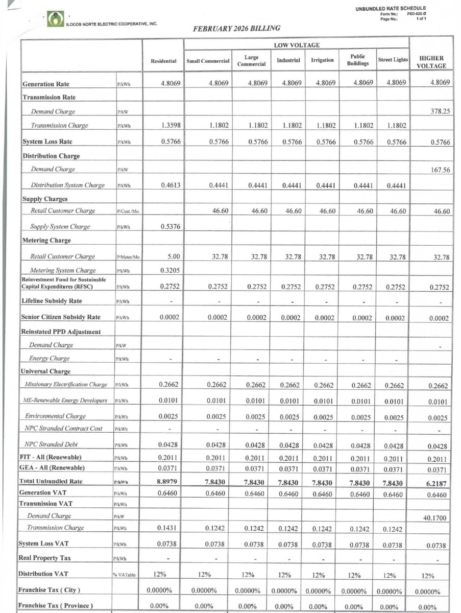 Breakdown of Generation Charge/ Unbundled Rates 2025