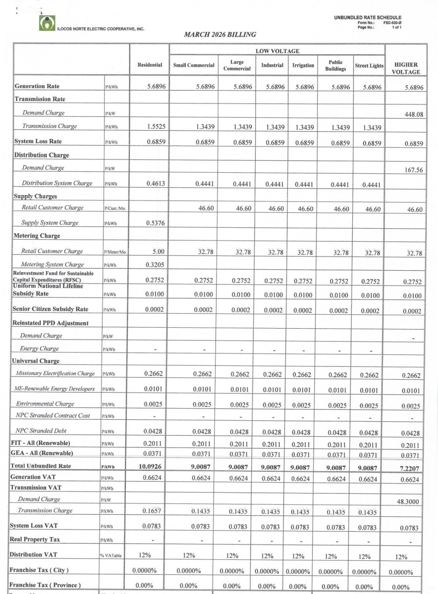 Breakdown of Generation Charge/ Unbundled Rates 2025